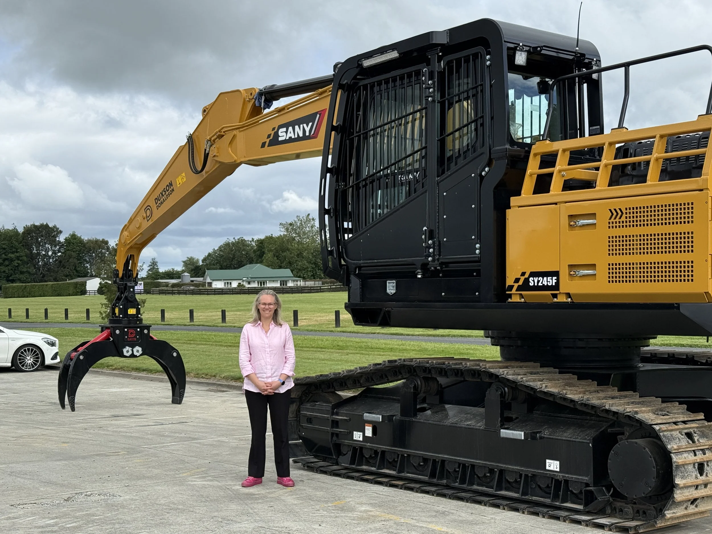 Sarah with a SANY SY245F with a Duxson Donaldson grapple